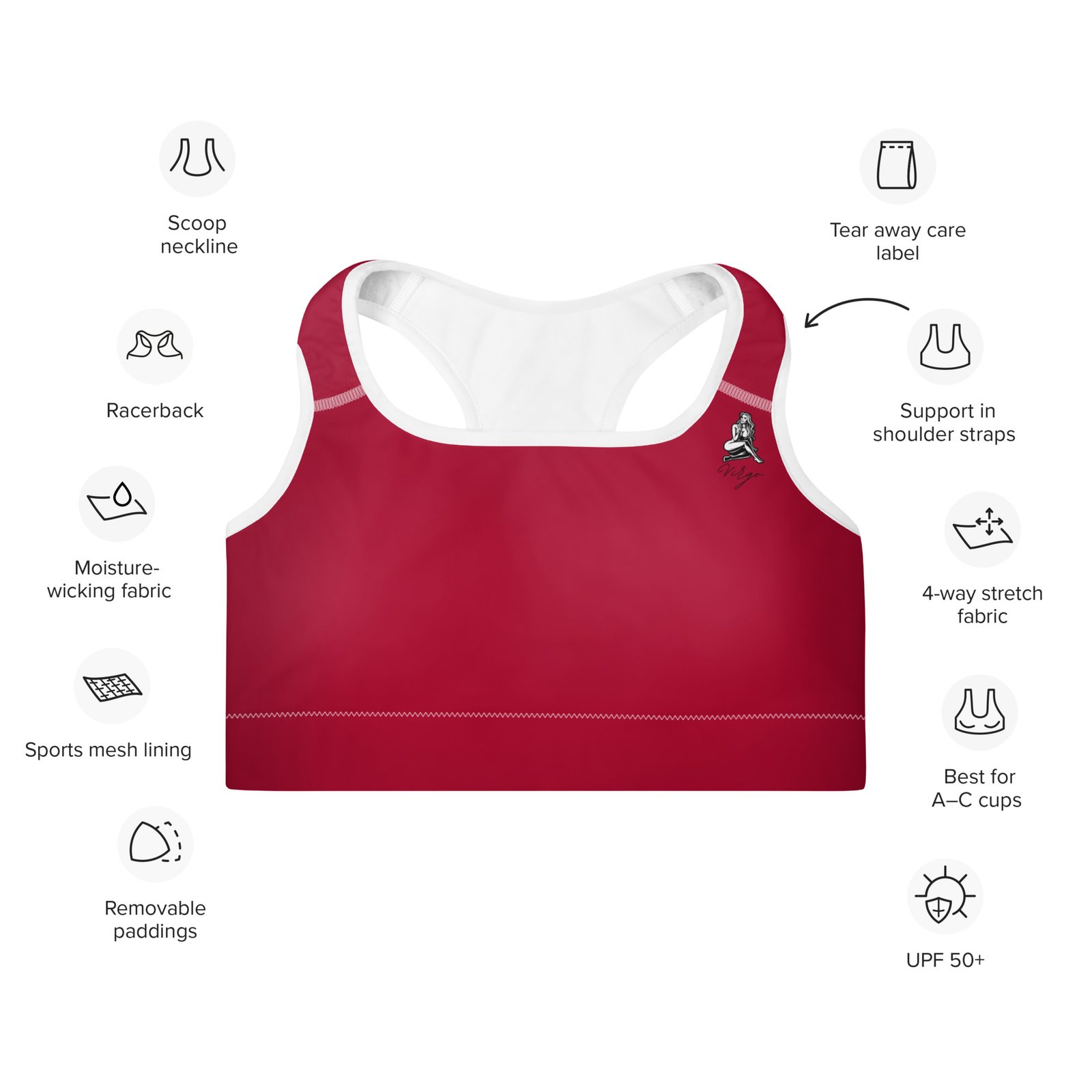 Paminkštinta sportinė liemenėlė „Virgo – Mergelė”